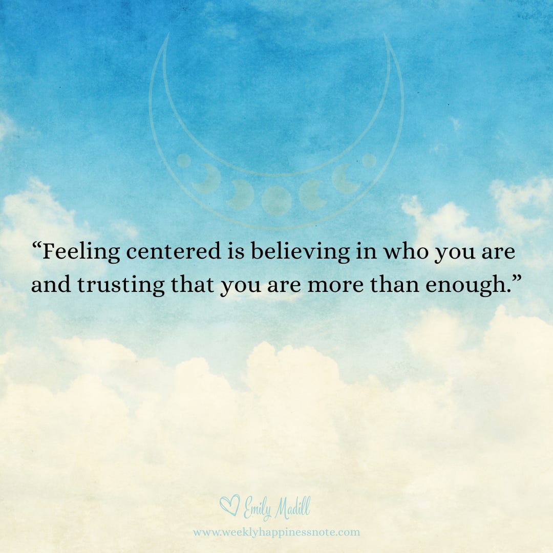 “Feeling centered is believing in who you are and trusting that you are more than enough.”