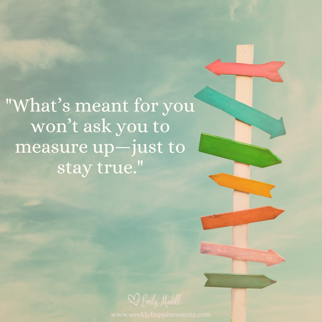 "What’s meant for you won’t ask you to measure up—just to stay true."