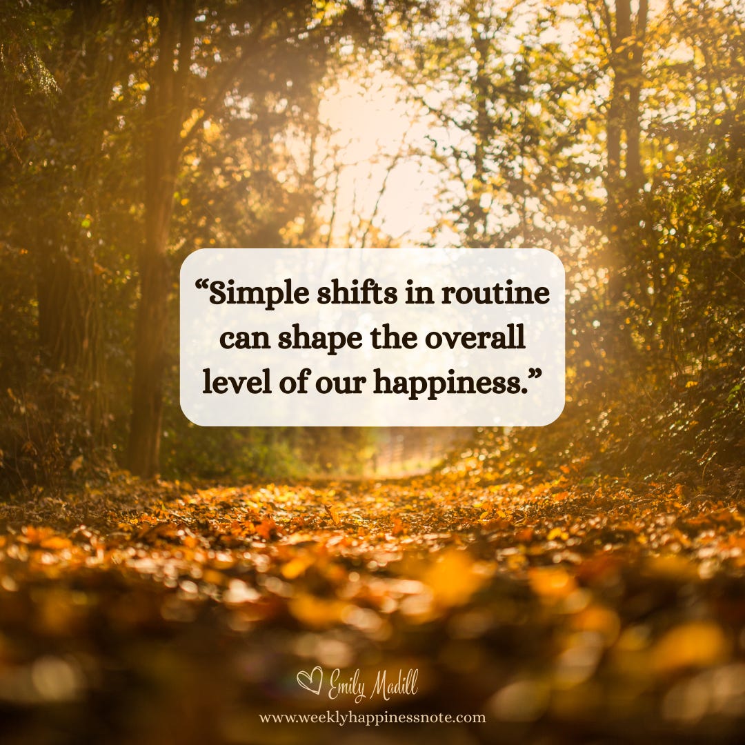 “Simple shifts in routine can shape the overall level of our happiness.”